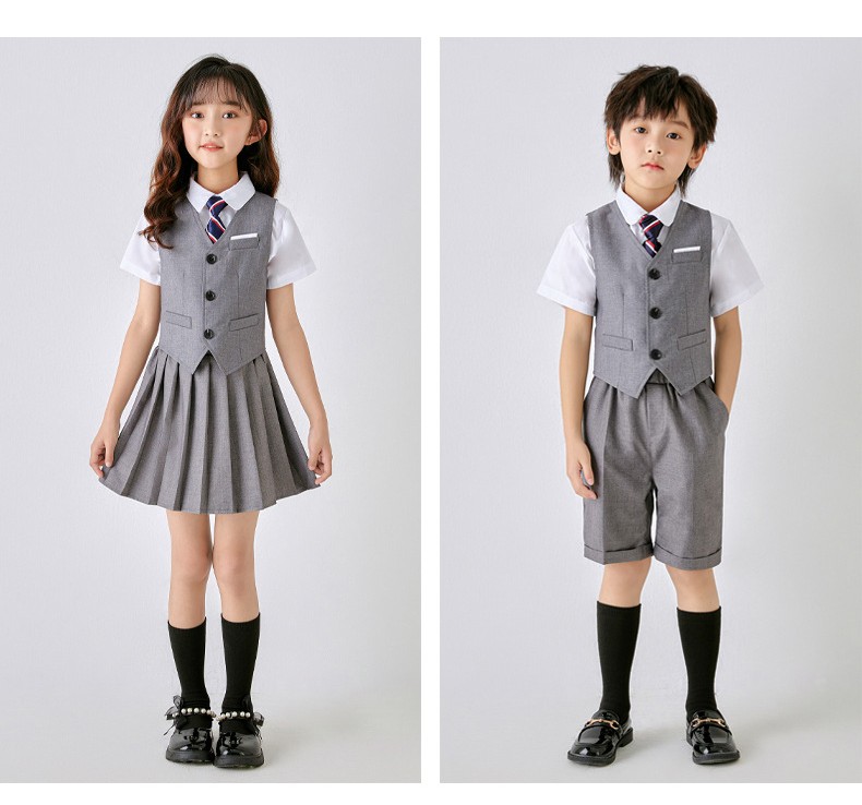Nossa unidade de produção especializada cria conjuntos uniformes precisamente adaptados que incorporam os padrões escolares britânicos tradicionais. O design do colete single-breasted estabelece uma base sofisticada para eventos escolares formais, oferecendo elementos de estilo personalizáveis.