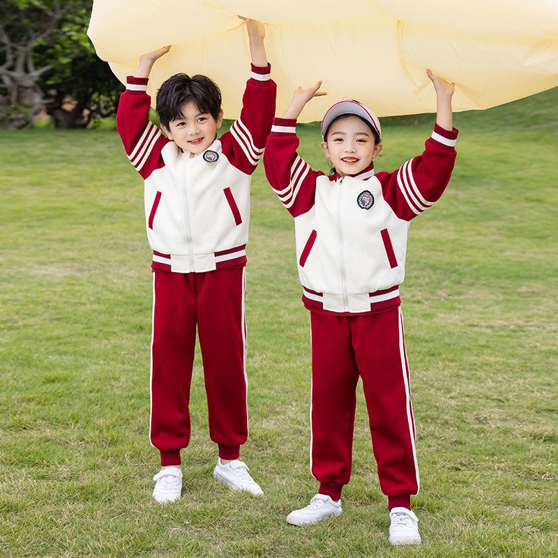 Este sistema uniforme coeso combina funcionalidade esportiva com estilo coordenado, apresentando uma paleta de cores frescas de vermelho, esbranquiçado e cáqui que cria harmonia visual em todas as peças. A coleção oferece opções versáteis para diferentes estações e atividades, mantendo uma identidade escolar unificada.