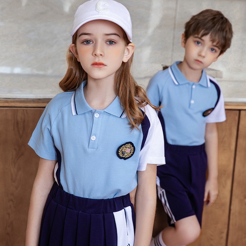 Esta sofisticada coleção cinza e branca incorpora a estética escolástica tradicional através da alfaiataria refinada. O esquema de cores coordenado cria uma identidade unificada do campus, garantindo conforto em climas quentes.