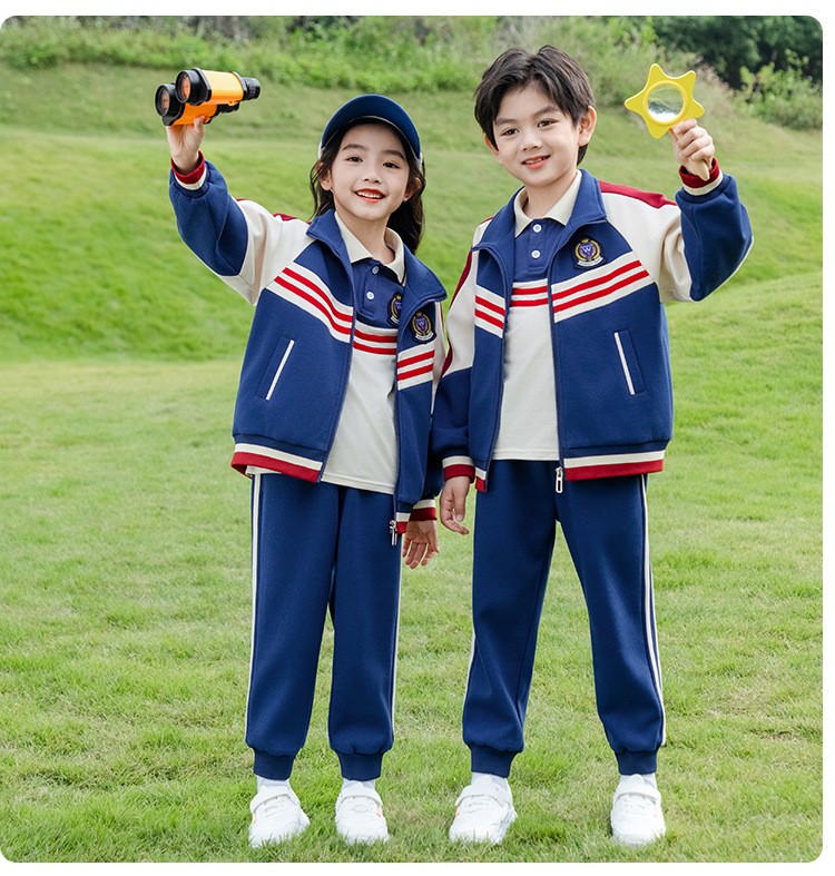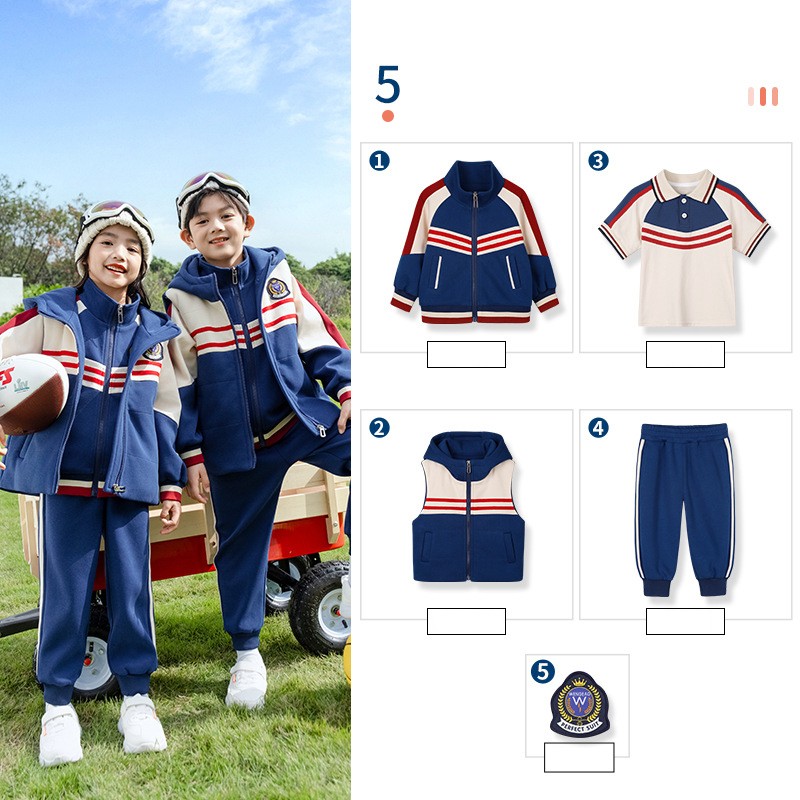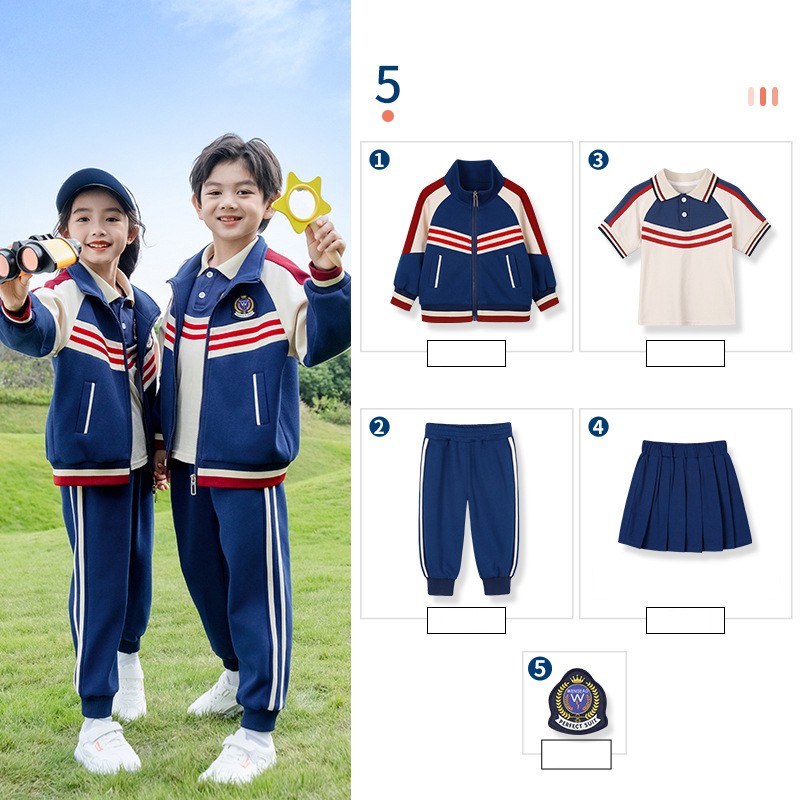 Esta coleção coordenada combina bloqueio de cores clássico com design prático para criar uma solução uniforme completa para todas as estações. A sofisticada base naval com listras contrastantes mantém a consistência visual enquanto atende às diferentes necessidades climáticas ao longo do ano acadêmico.