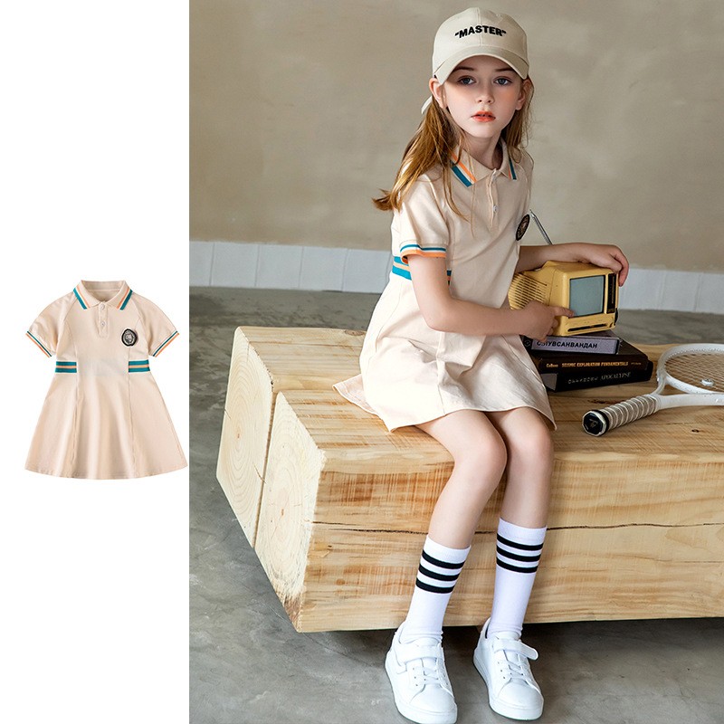 Meninas: vestidos de gola polo com painéis coloridos laterais, adequados para acessórios