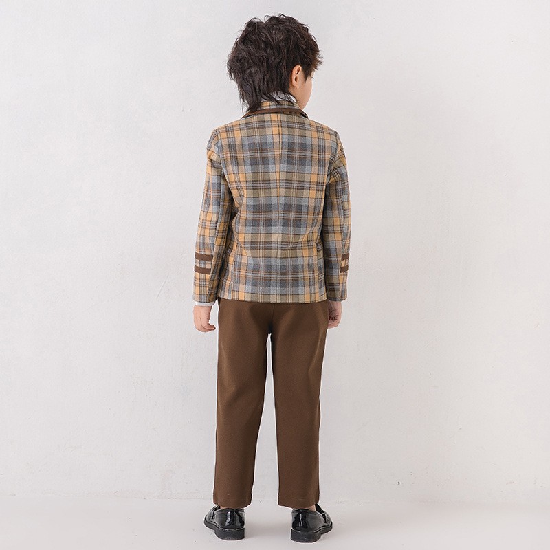 Heritage Design Elements: O padrão xadrez clássico se conecta à tradição acadêmica, enquanto os acentos marrons neutros proporcionam calor e versatilidade em transições sazonais e eventos formais