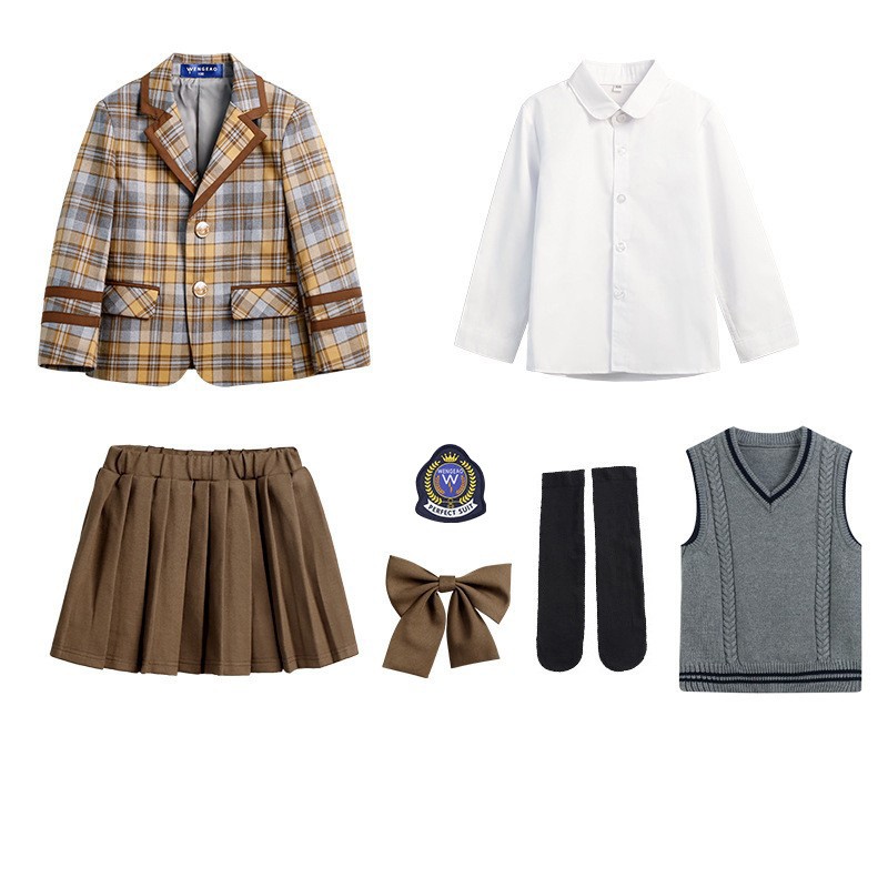 Esta elegante coleção xadrez combina magistralmente a estética escolástica tradicional com o conforto contemporâneo. O sofisticado esquema de cores marrom e xadrez cria uma identidade distinta campus adequado para ocasiões formais, permitindo opções de estilo flexíveis.