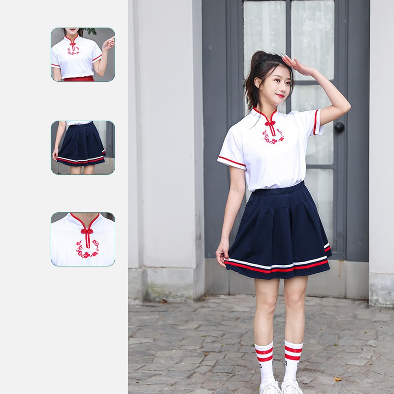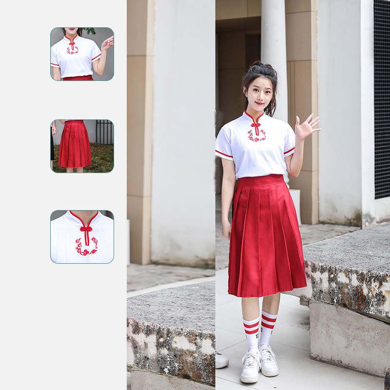 Esta coleção uniforme única integra lindamente elementos clássicos do design chinês com desgaste campus contemporâneo. A elegante base branca, acentuada por bordados vermelhos vibrantes, tubulações e botões tradicionais de sapo, cria uma identidade distinta que celebra a cultura, garantindo praticidade para as atividades escolares diárias.