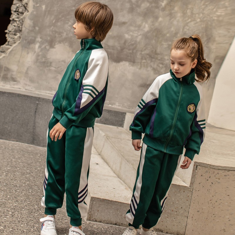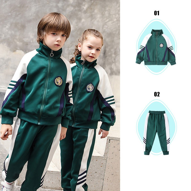 Este sofisticado conjunto de uniformes infantis combina magistralmente o apelo formal e nítido do estilo britânico com o conforto e a liberdade do sportswear moderno. A base verde profunda, acentuado com listras clássicas branco e azul marinho, cria um olhar distinto adequado tanto para a aprendizagem em sala de aula e jogo ativo.