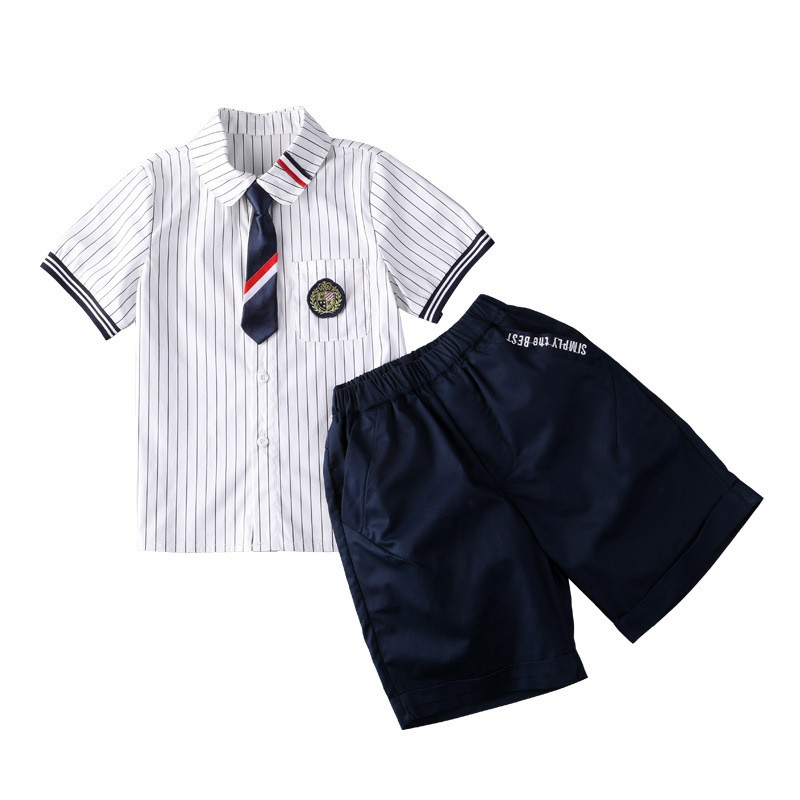 Estética Global do Design: O padrão de camisa listrada com esquema de cores de inspiração náutica cria apelo internacional, mantendo os padrões acadêmicos tradicionais adequados para diversos ambientes educacionais