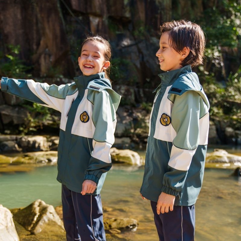 Este conjunto externo técnico combina funcionalidade pronta para o tempo com recursos de segurança aprimorados, criando proteção confiável para várias atividades educacionais ao ar livre. O esquema de cores inspirado na natureza promove a visibilidade, mantendo uma aparência escolar profissional.