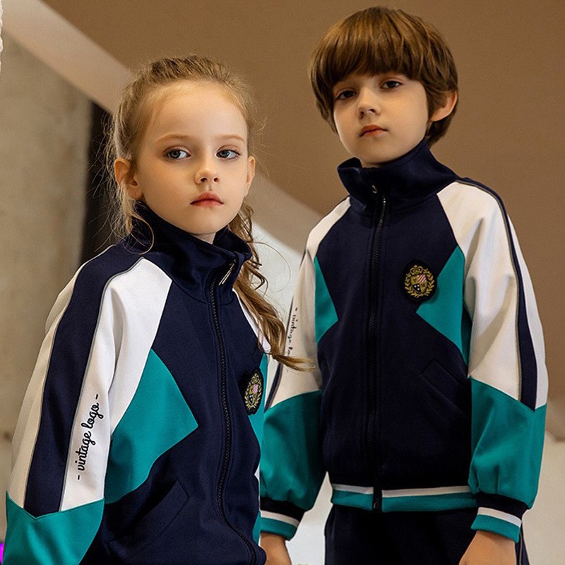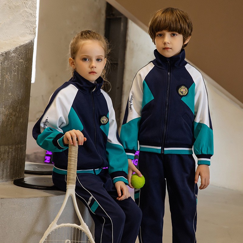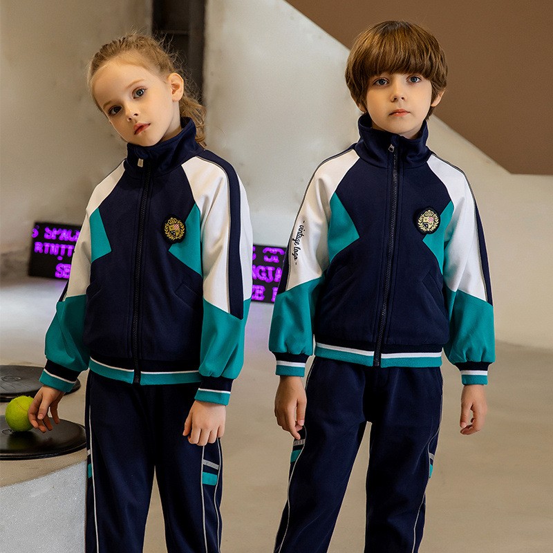 Design Atlético Moderno: Apresenta uma jaqueta de gola elegante e calças de jogger modernas com bloqueio de cores, criando um visual esportivo e elegante que as crianças adoram.
