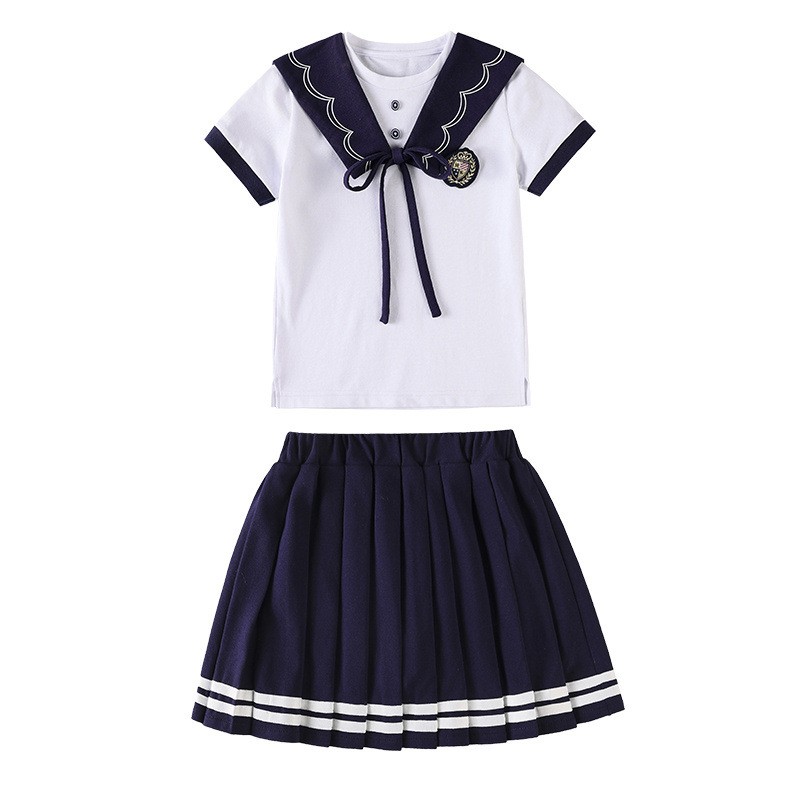 Esta coleção coordenada oferece soluções personalizadas para roupas escolares de clima quente, combinando estilo clássico com conforto prático no verão. A paleta branca e marinha crisp cria uma aparência unificada, acomodando diferentes preferências de design para meninos e meninas.